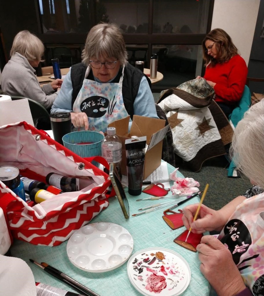 We are a sharing group building relationships around art. Artists may share ideas and techniques during this gathering time.
