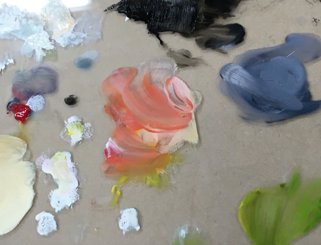 I will be bringing a variety of browns (umbers and siennas), greens, yellows, oranges, reds, black and white. If you have a color palette you prefer, just bring it for yourself.