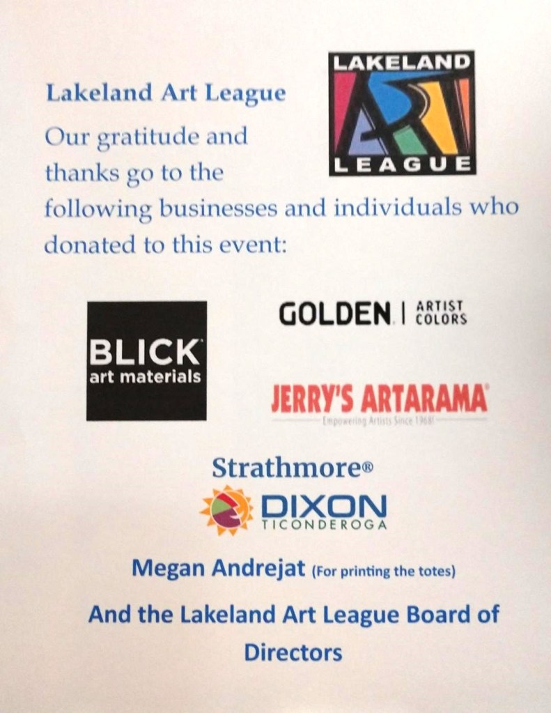 Thank you to Leah Chayer for Chairing this event. Thank you to David Barnhill for the outstanding art talk on Picasso. To all our members who brought tasty dishes, thank you. To Shelia Punches and Pat Fox for cooking up some really good sandwiches, thank you. A special thank you to Denny Robertson for the Dillman’s preview and the gift certificate one lucky member won. To our Board of Directors who worked hard to put this event on and have donated many of the raffles, “Brush People”, paper goods and art supplies, A big thank you to you.
